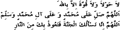 I. “Ла хауля ва ля къуввата илля биллаh. Аллаhумма салли 'аля Мухаммадин ва 'аля aали Мухаммадин ва саллим. Аллаhумма инна нас'алукаль джанната ва на'узубика мина-н-нар”.